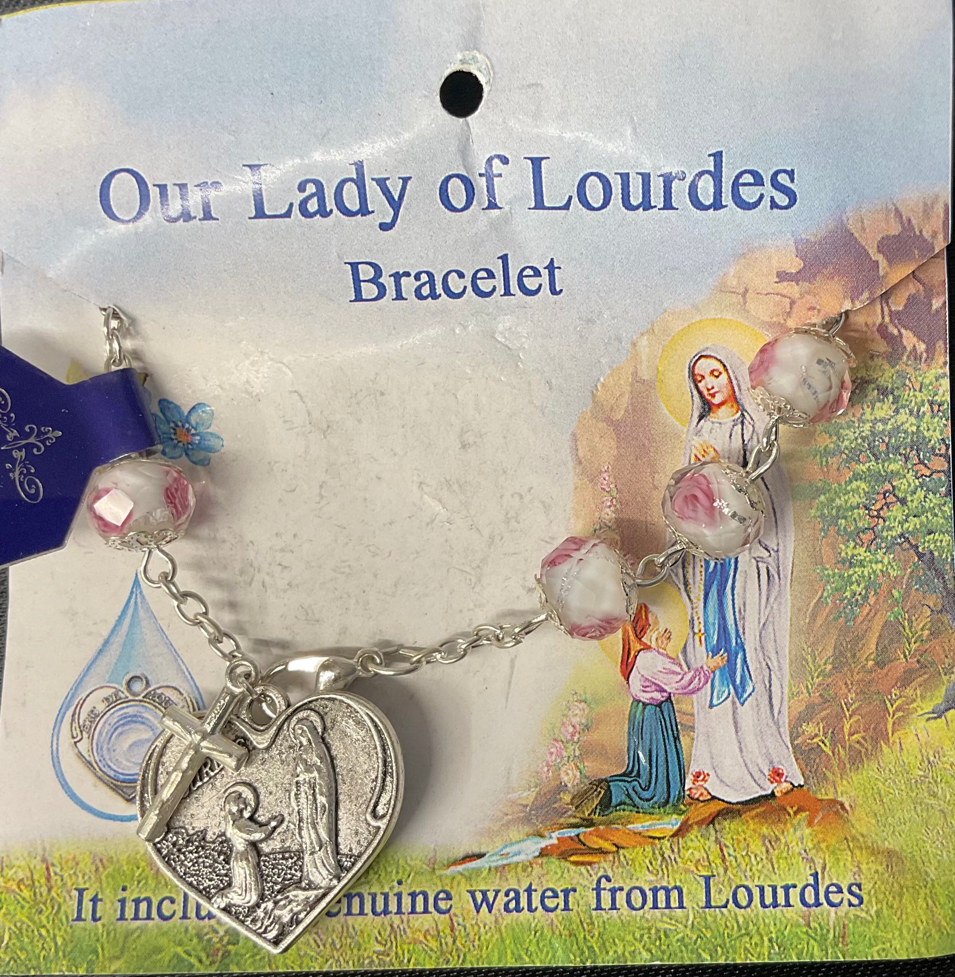 Venetian Glass Our Lady of Lourdes White and Pink Braclet